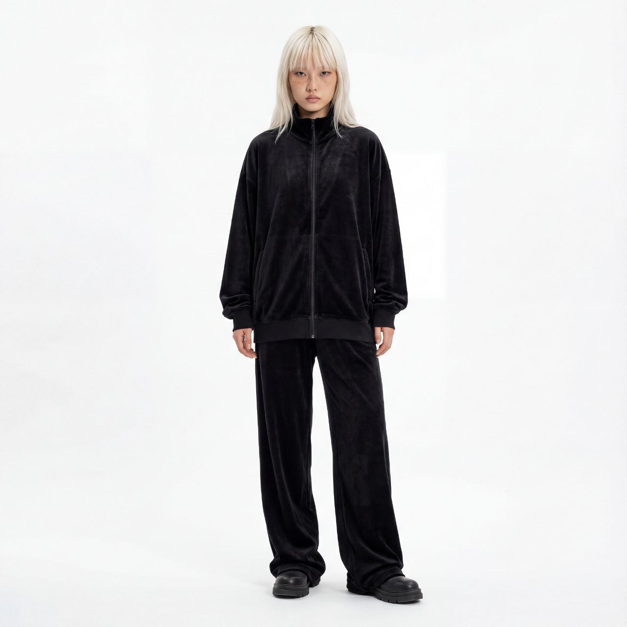 Женская повседневная удобная одежда. Олимпийка на молнии из мягкого шелкового бархата с карманами. Посадка оверсайз